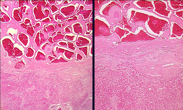- prall mit Erythrozyten gefüllt